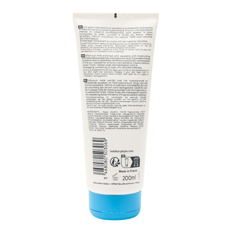 Thanks to its formula with hyaluronic acid and plant-based squalane, this after-sun care soothes sun-overexposed skin while providing an immediate sensation of freshness and comfort. It relieves feelings of tightness, leaving the skin soft and plumped.